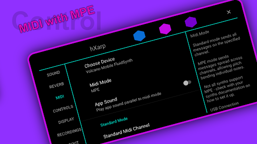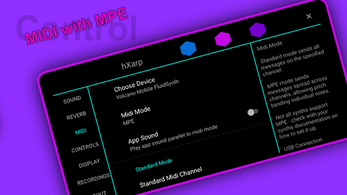 hXarp is a musical instrument and MIDI controller (with MPE support) for Android devices, meant to replace bulky and expensive MIDI equipment or just to play music on the go.